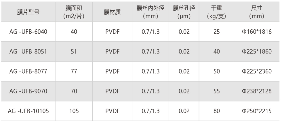 使用寿命长:专有纤维增强复合制膜技术, 膜丝断裂应力达 150 N 以上,使用寿命 5 年以上。